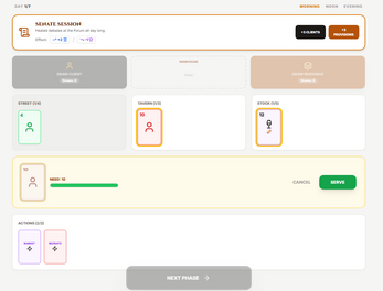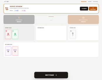 A tavern must be impeccable. At the end of each phase (Morning, Noon, Evening), you must: